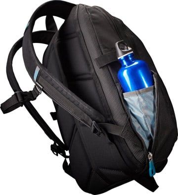 - В растягивающемся боковом кармане безопасно хранятся небольшие предметы и помещается бутылка воды
